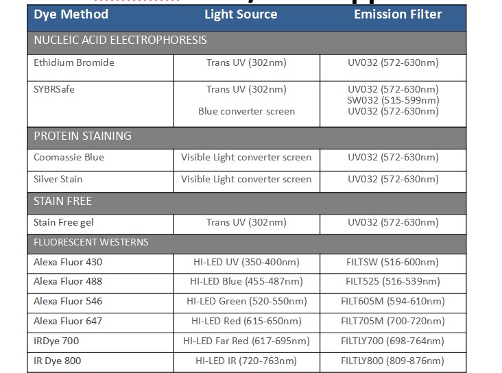 De plus, le système propose des options d'éclairage HI-LED couvrant l'ensemble du spectre des longueurs d'onde bleu, vert, rouge et infrarouge à haute intensité. Ces options d'éclairage permettent des temps d'exposition plus rapides et fournissent des images de qualité de publication. De plus, une option d'éclairage en bordure est disponible pour la capture de gels 2D, y compris l'utilisation de gels DIGE.