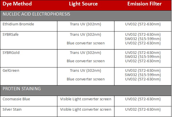 It contains a vast database of colorants and image protocols. You will need to know the type of gel you use and GeneSys will automatically select the éclairage and the optimal filters to produce the parfaite image.