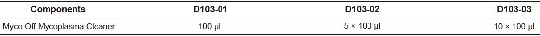Myco-Off Mycoplasma Cleaner is the latest generation of mycoplasma elimination reagent, mainly used to eliminate mycoplasma in cells, serum and culture medium. Different from conventional antibiotics, its elimination principle is to destroy the membrane structure of mycoplasma, causing mycoplasma to rupture and die. It can effectively eliminate antibiotic-resistant mycoplasma without developing drug resistance. For common Gram-negative and Gram-positive bacteria, It also has a certain inhibitory effect. Use this product for 3 - 7 days, then the intracellular and extracellular mycoplasma can be completely eliminated. Myco-Off Mycoplasma Cleaner can eliminate most types of mycoplasma without toxicity to the cells themselves.