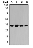 Description:Rabbit polyclonal antibody to MATH-1Immunogen:Recombinant full length protein of human MATH-1Purification:The antibody was purified by immunogen affinity chromatography.Clonality:PolyclonalForm:Liquid in 0.42% Potassium phosphate, 0.87% Sodium chloride, pH 7.3, 30% glycerol, and 0.01% sodium azide.Dilution:WB (1/500 - 1/2000)Gene Symbol:ATOH1Alternative Names:ATH1; BHLHA14; Protein atonal homolog 1; Class A basic helix-loop-helix protein 14; bHLHa14; Helix-loop-helix protein hATH-1; hATH1 Entrez Gene (Human): 474; Entrez Gene (Mouse): 11921; SwissProt (Human): Q92858; SwissProt (Mouse): P48985; Storage/Stability:Shipped at 4°C. Upon delivery aliquot and store at -20°C for one year. Avoid freeze/thaw cycles.