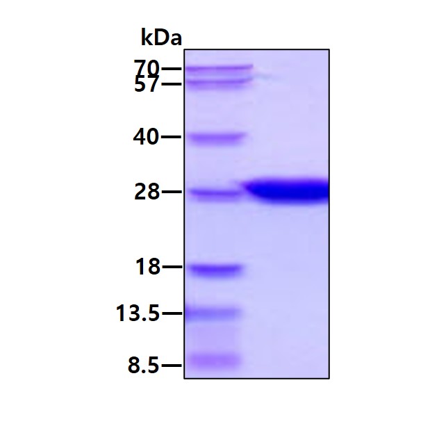 - 25 kDa (220aa) confirmed by MALDI-TOF