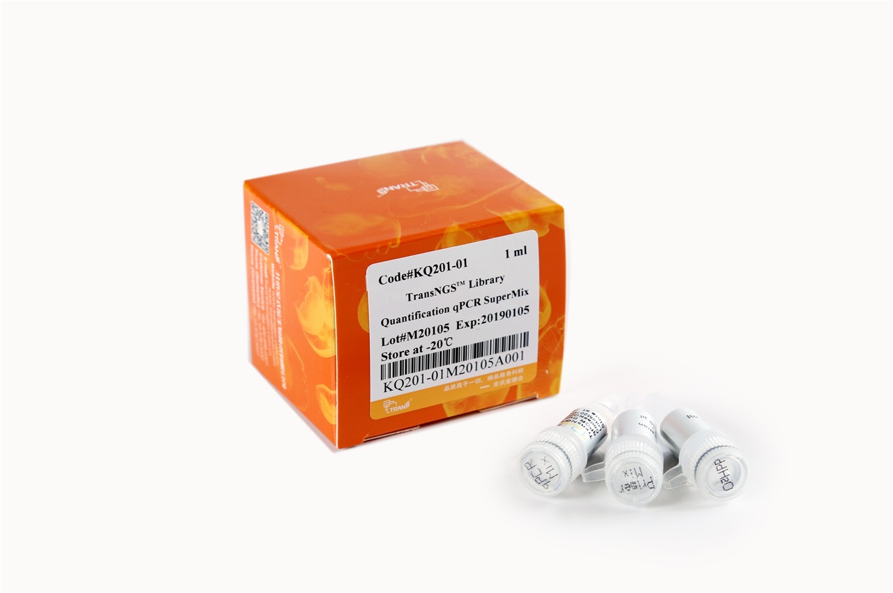 TransNGS® Library Quantification qPCR SuperMix is a ready-to-use qPCR cocktail. It contains a novel TransStart® TipTaq DNA Polymerase, unique hot start reagents (DNA binding proteins combined with unique chemical), EvaGreen, dNTPs, PCR Enhancer, PCR stabilizer and optimized reaction buffer suitable to NGS library quantification. TransNGS® Library Quantification qPCR SuperMix enables accurate library amplification with various GC contents. It’s provided at 2× concentration and can be used at 1× concentration by adding template, primer, passive reference dye (optional) and Nuclease-free Water.