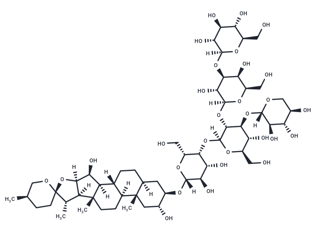 | Smiles | 20[C@@]12O[C@]3(CC[C@@H](C)CO3)[C@@H](C)[C@]1(20)[C@@]1(C)CC[C@@]3(20)[C@@](20)(CC[C@@]4(20)C[C@@H](O[C@]5(20)O[C@H](CO)[C@H](O[C@]6(20)O[C@H](CO)[C@@H](O)[C@H](O[C@]7(20)OC[C@@H](O)[C@H](O)[C@H]7O)[C@H]6O[C@]6(20)O[C@H](CO)[C@H](O)[C@H](O[C@]7(20)O[C@H](CO)[C@@H](O)[C@H](O)[C@H]7O)[C@H]6O)[C@H](O)[C@H]5O)[C@H](O)C[C@]34C)[C@]1(20)[C@@H]2O |