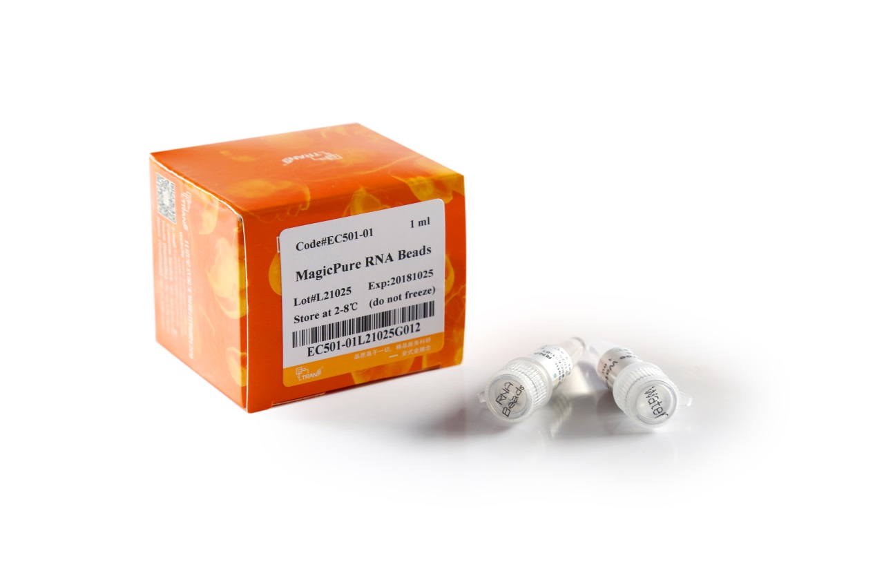MagicPure® RNA beads can easily extract RNA from mastermix of reaction such as rRNA depletion, DNase I digestion, in vitro transcription, labeled RNA and synthetic RNA. The resulting RNA product is suitable for RNA library construction, RT-PCR, qRT-PCR, chip analysis, Northern blot RNAi, or other downstream applications.
