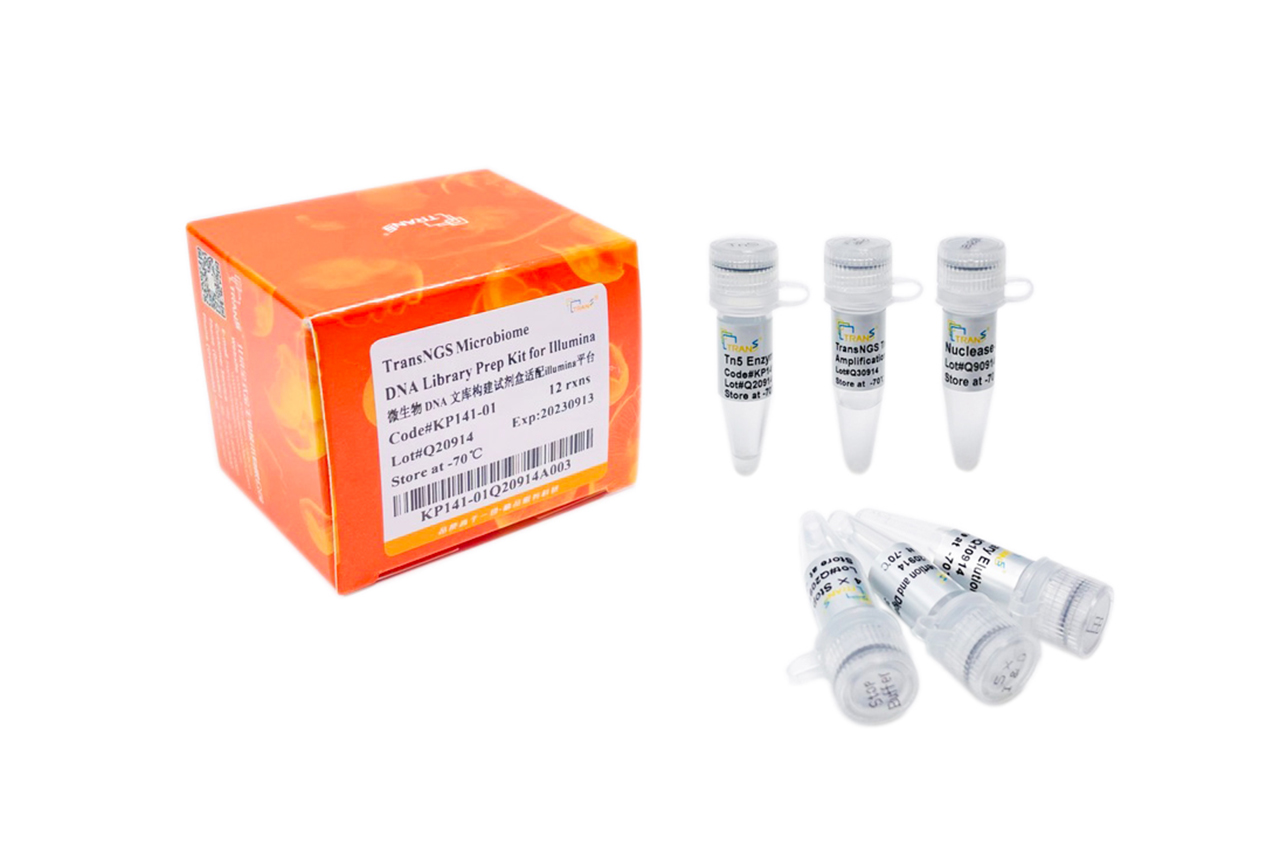 TransNGS® Microbiome DNA Library Prep Kit for Illumina® is a reagent kit designed for Illumina high-throughput sequencing platform, suitable for preparing DNA library from 1ng microbio genomic DNA acquired from blood, bronchoalveolar lavage fluid, sputum, nasopharyngeal or oropharyngeal swab, pleural or peritoneal fluid, cerebrospinal fluid, amniotic fluid, etc.. The resulting library can be used for paired-end sequencing. This kit employs an in vitro transposition technique, which can simultaneously complete DNA fragmentation and adapter ligation within 5 minutes. In comparison to conventional library preparation method that requires DNA fragmentation, end repair, and adapter ligation, the in vitro transposition technique significantly shortens library construction time and simplifies the operation.